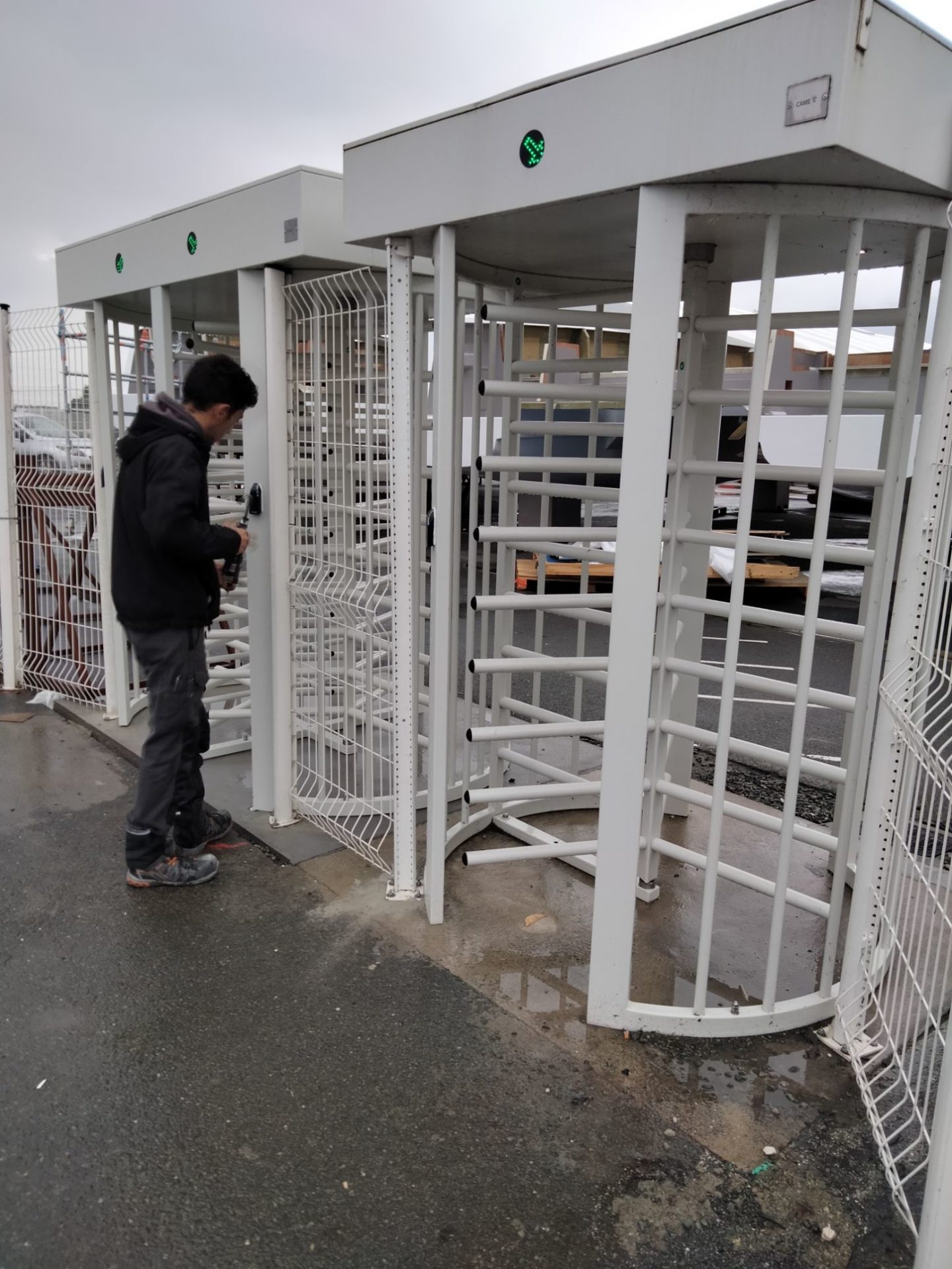 Mise en place d’un double tourniquet de sécurité CAME avec contrôle d’accès pour que notre client puisse gérer le flux de personnel arrivant à l’usine.