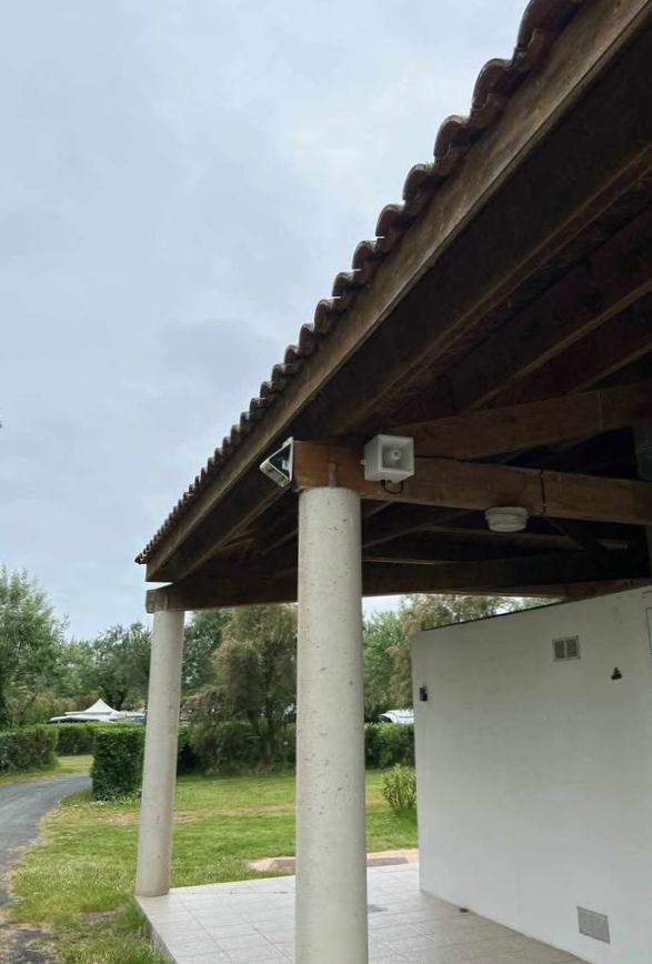 Notre équipe est intervenue sur un camping situé sur l’île d’Oléron pour mettre en place un système d’alerte sonore multirisque. Des diffuseurs sonores ont été installés en hauteur afin de couvrir efficacement l’ensemble du site et d’alerter en cas d’incendie, inondation ou intempéries (tempête, vents violents, etc.).